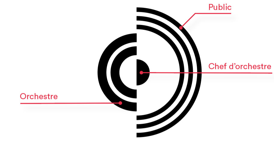 – les 3 cercles des corrélations (chef, orchestre, public) (création, interprétation, diffusion) (professionnel, averti, tout public)