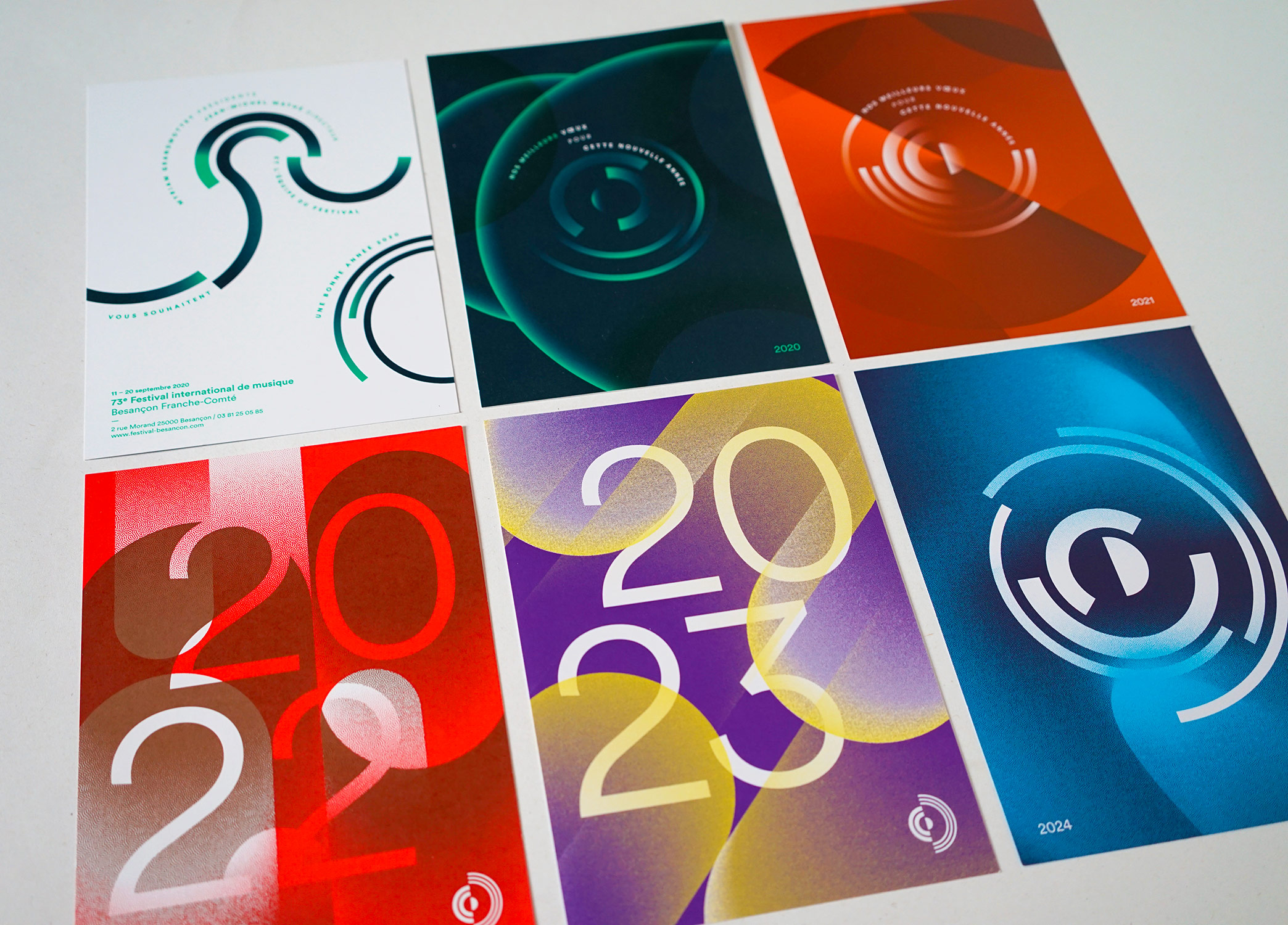 – L’Imprimeur Simon (Ornans), en quadrichromie sauf 2019 + 2022 en deux tons directs